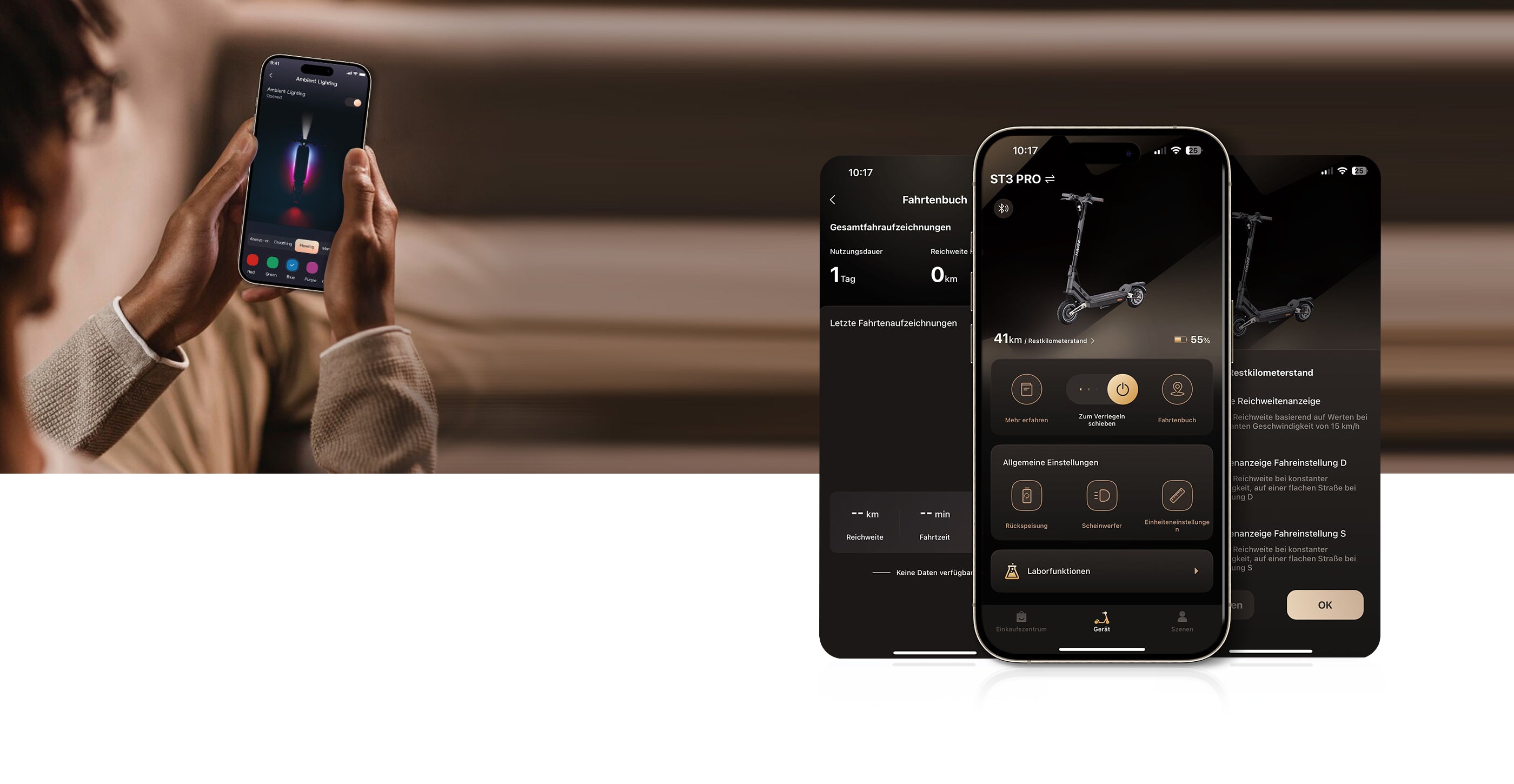 Djärv design möter kraftfulla prestanda. Den här högpresterande elsparkcykeln har fyra gyllene dämpningsarmar för oöverträffad stötdämpning och en iögonfallande estetik, och är byggd för att klara alla sorters terräng.